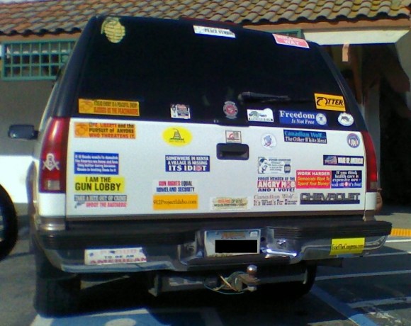 This is the kind of car that scares me. It’s hard to make out every single sticker here, but rest assured, they’re all a little frightening.