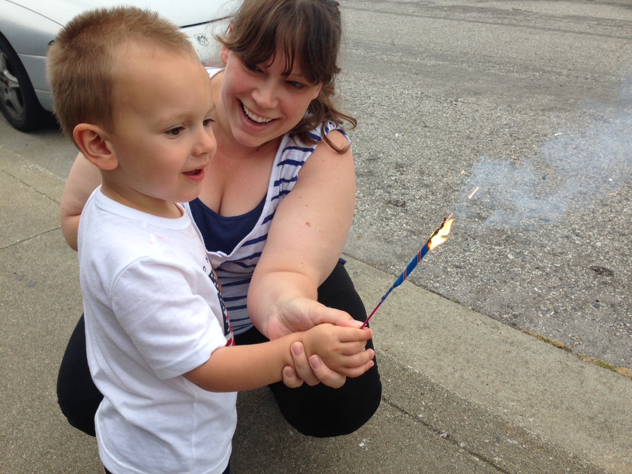 After this one, I got him to trade me the rest of the sparklers for some bubbles, which are much less nervewracking.