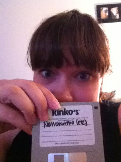If I hadn’t already found the bound paper version of this Nanowrimo, that I had printed at Kinko’s back in 2003 (before it was Kinko’s/FedEx), the discovery of this floppy disk would have thrilled me, while also panicking me, as I have no idea where I could even put this thing.